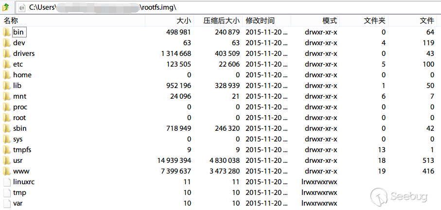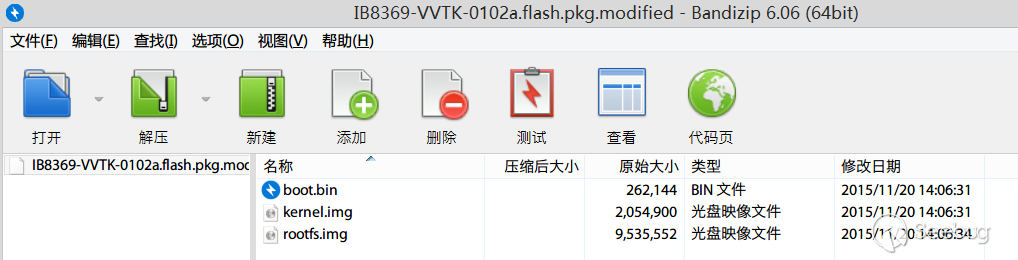 從 ib8369firmware.zip 里解壓出 IB8369-VVTK-0102a.flash.pkg 。去掉文件頭部的 54 字節后用 BandiZip 可以提取出 rootfs.img ,是文件系統鏡像。