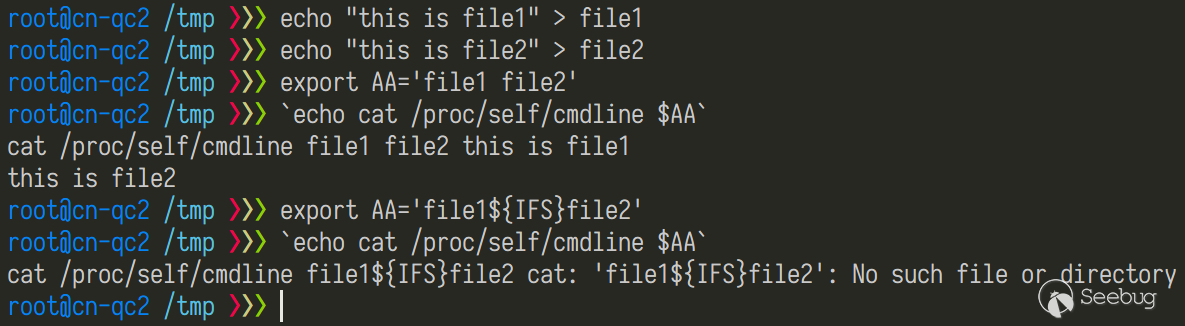 在這里我用變量 ${IFS} 替代空格,用 |tee 替代 >: