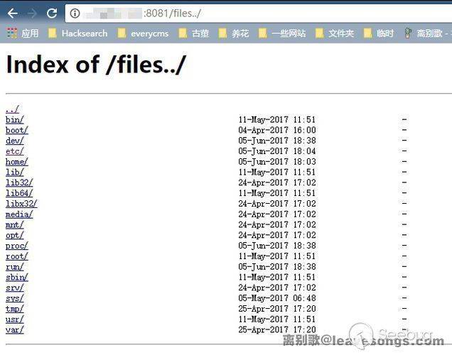 但我們注意到,url上/files沒有加后綴/,而alias設置的/home/是有后綴/的,這個/就導致我們可以從/home/目錄穿越到他的上層目錄: