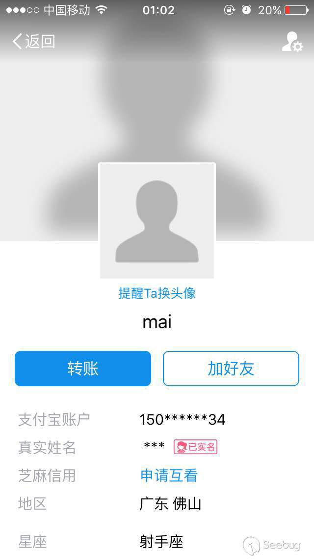 在搜索引擎中搜索攻擊者郵箱“178×××××791@163.com”,未找到任何有價值信息。繼而嘗試搜索攻擊者竊取用戶短信和通訊錄時指定的手機號碼“150×××××634”,分別得到與該手機號碼關聯的支付寶賬戶和微信賬戶如下,可以看到,所得賬戶和該惡意木馬似乎并沒有什么關聯。