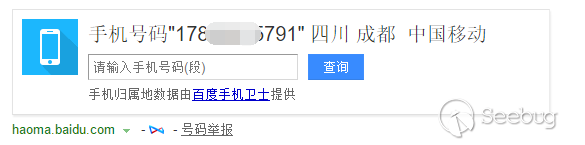 我們觀察攻擊者郵箱帳號,猜測其用戶名極有可能也是一個手機號碼,搜索可知該手機號碼的運營商為中國移動,歸屬地為四川成都,如下圖: