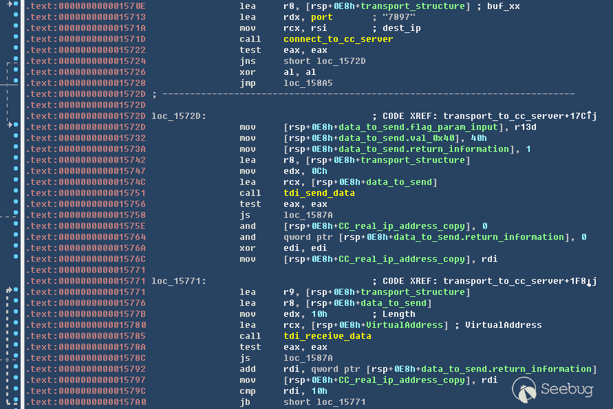 通訊使用TDI網絡函數,連接服務器代碼,如下圖所示: