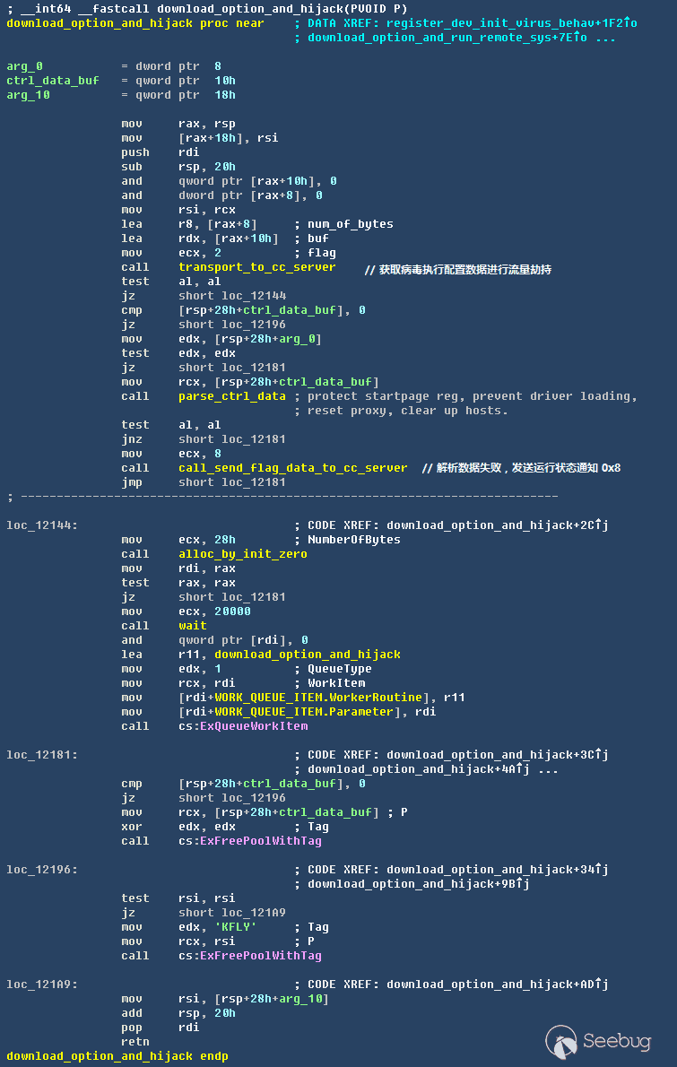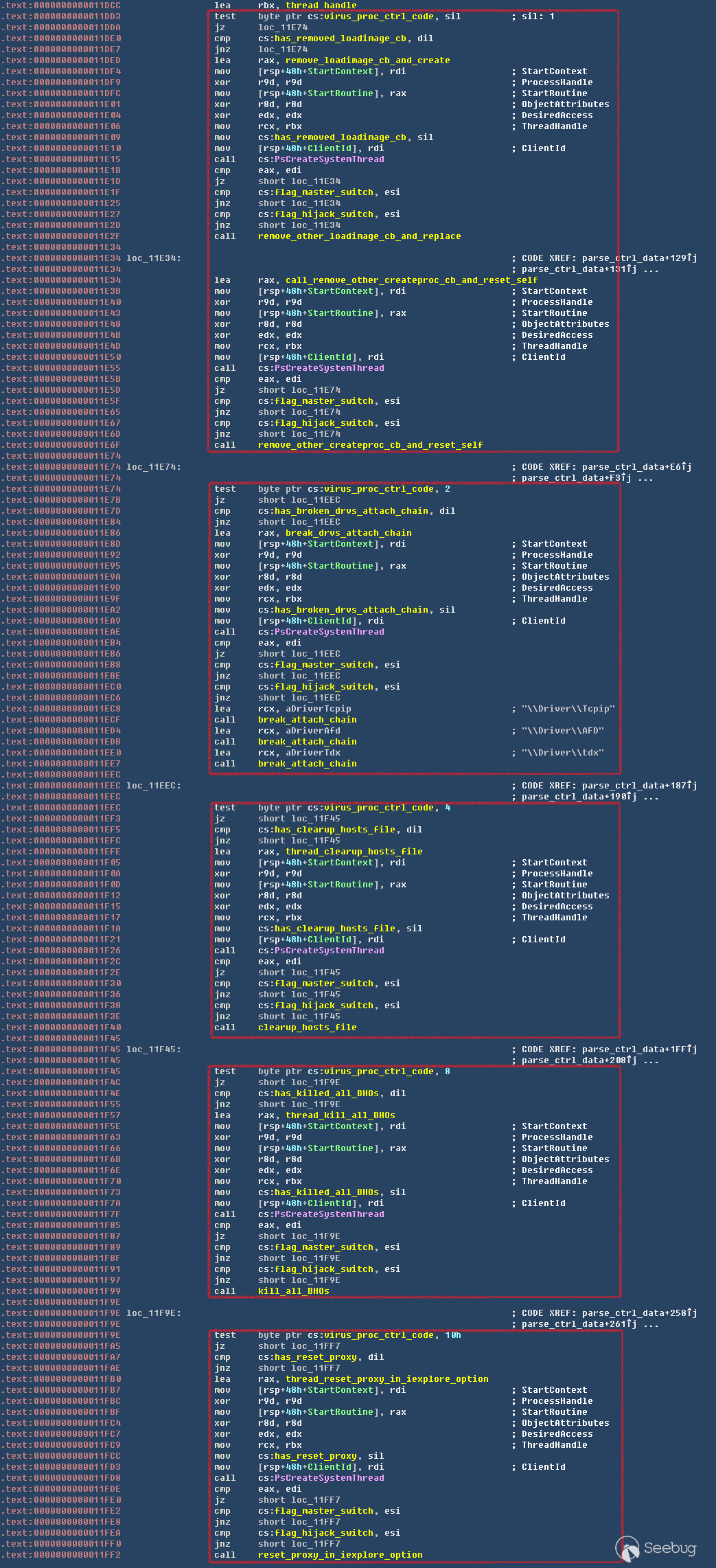 使用 virus_proc_ctrl_code 變量控制執行流程,如下圖所示: