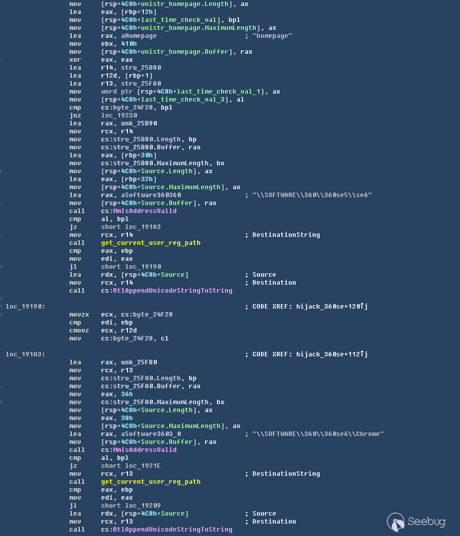 劫持瀏覽器代碼以劫持360安全瀏覽器為例,如下圖所示: