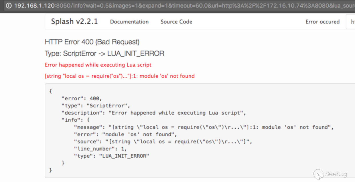 Splash開放在 http://192.168.1.120:8050 ,版本為 v2.2.1,Attacker可訪問