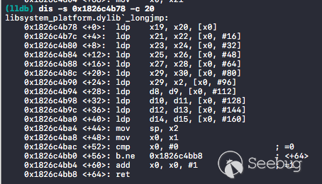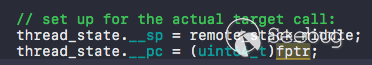 利用 coreauthd 的 task port 我們可以利用 mach_vm_* API 任意的修改 coreauthd 的內存以及寄存器,所以我們需要先開辟一段內存作為 stack,然后將 sp 指向這段內存,再將 pc 指向我們想要執行的函數地址就可以讓目標進程執行任意的函數了,具體實現在 call_remote() 中: