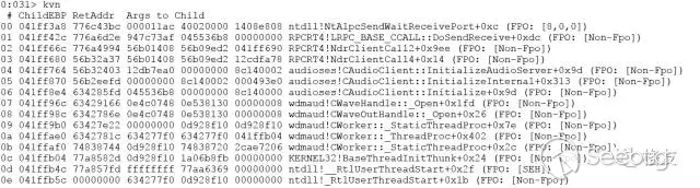有了強大的內核調試會話,頓時感覺鳥槍換炮了。列出WeChat進程的所有線程,找到剛才發起RPC的31號線程(系統ID 4898)。