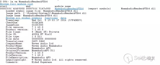 想到大半天的時間沒有了,多少有些可惜。不過,想到搞清楚了一個問題,定位到了根源(希望maxx audio的同行聯系老雷獲取崩潰現場的dump),而且記錄下來的分析過程或許對軟件同行們解決類似問題有所幫助,那么時間花的也值得了。分析過程中,老雷保存下了幾個關鍵現場的轉儲文件,供以后交流和研習使用(有興趣的同行請關注軟件調試研習班針對Windows的特別專題)。