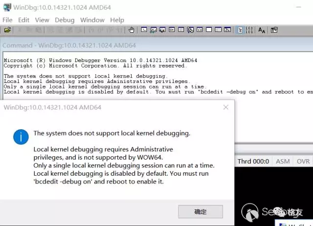 一條路不行,只好找下一條。嘗試本地內核調試,需要事先啟用,但是老雷確實啟用好了的,但是 windbg 報錯失敗,原因是某處有個bug,啟動之后,只能用一次,第二次便出現下圖所示的錯誤。我確實是用過了一次的。