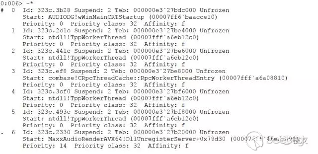 下一步應該調試 audiodg 進程了,看它在忙什么,有那么多消息排隊而不處理。