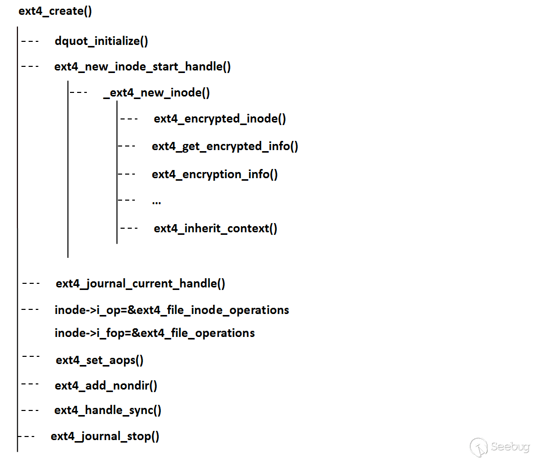 簡單的說,creat 時完成兩件事:一是創建ext4_encryption_context保存到文件的 xattr;二是初始化好ext4_crypt_info 保存到 inode 的 i_crypt_info,后續使用時取出 tfm,利用 kernel crypto API 即完成了加/解密工作。