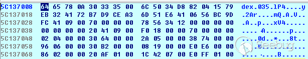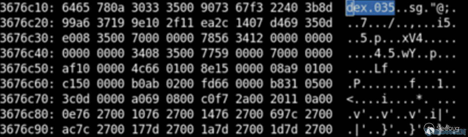 - 內存中尋找dex.035或者dex.036