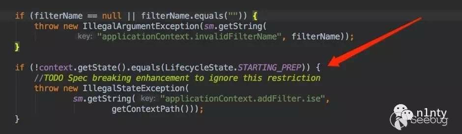但是并沒有簡單到直接調用一下這可以實現,因為 Tomcat 在對這個接口的實現中,是只允許在容器還沒有初始化完成的時候調用這幾個方法。一旦容器初始化已經結束,調用時就會出現異常: