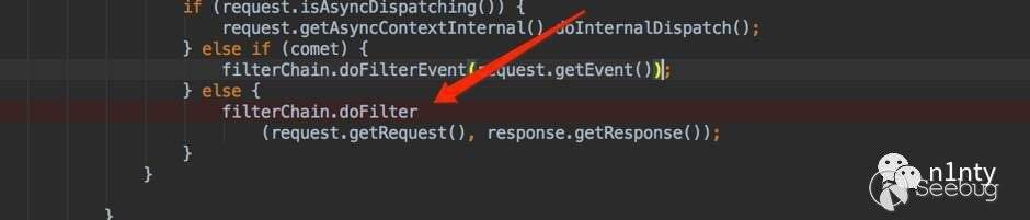 我看了一下這個 if 之后的語句,并不是太復雜,這使得我們完全可以自己用代碼來執行后面的邏輯。寫的過程也沒有太順利,我完全復制了后面的邏輯,但是動態插入過濾器卻沒有生效。所以去重新調試了一遍tomcat 接收處理請求的全過程,發現為請求組裝filterChain 是在 StandardWrapperValve 里面進行的: