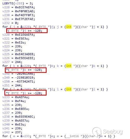 解密算法有2種,一種是單字節+0x80獲取ASCII的明文字符串,另一種為雙字節+0x80獲取UNICODE的明文字符串: