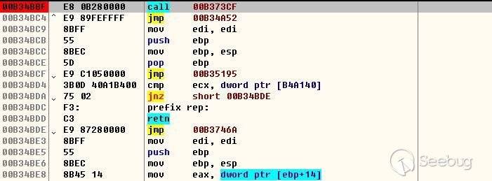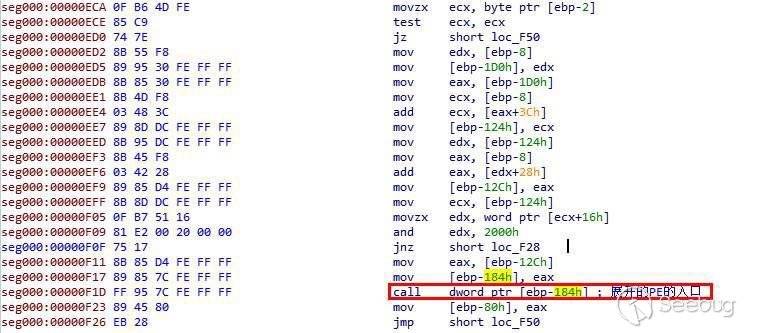 下圖為內存中加載的PE的OEP處: