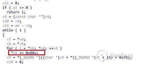 每一個字節+0x80,遇到0結束,得到明文的字符串: