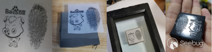 受到光敏印章的啟發和指紋識別的成像原理(光學和電容指紋,都需要有凹凸不平的表面),我們想到如果把打印的印章圖像換成指紋紋路圖像,是不是也可以成型出凹凸不平的指紋紋路呢?經過大量測試發現,只要調整指紋紋路的粗細和強光的功率,完全可以滿足假指紋制作的精度要求。