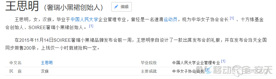 通過“奢瑞小黑裙”官方宣傳材料及互聯網公開情報檢索得知,“奢瑞小黑裙”創始人為王思明,其個人背景信息在互聯網上公開版本如下圖: