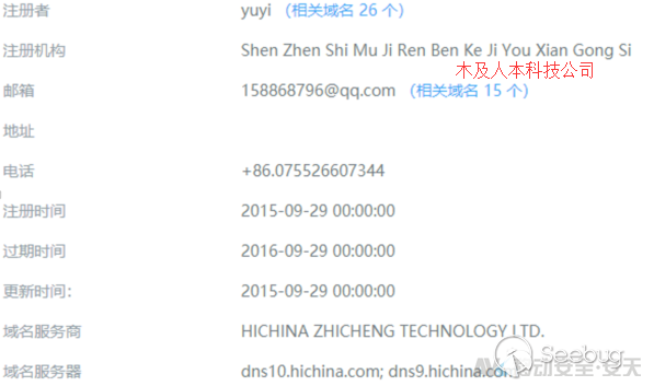 同時,該域名在安天移動安全情報分析團隊對紅人裝App進行數據包抓取分析的過程中,也發現其當前仍然承載著紅人裝App的業務,而并非與根域名首頁一樣,僅有自動生成的推廣站,故可認為“深圳市木及人本科技有限公司”也可能與紅人裝相關業務具備一定聯系。