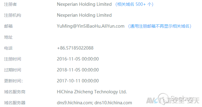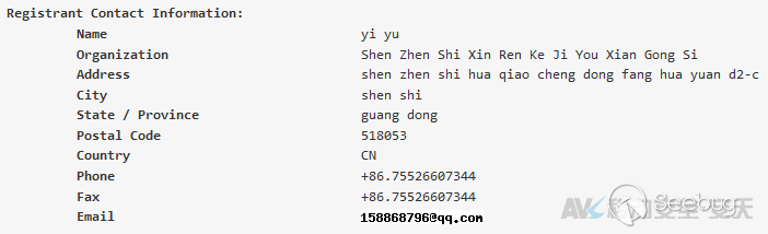 對紅人裝官方網站hongrenzhuang.com 進行Whois域名信息查詢,可發現該域名仍然在“深圳市信人科技有限公司”名下,由阿里云提供域名服務,如下圖。