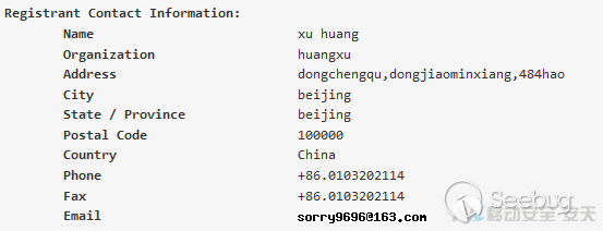 其官方域名gtc666.com的Whois域名信息顯示,其歸屬注冊人為Huang Xu,注冊E-Mail為sorry9696@163.com,如下圖。