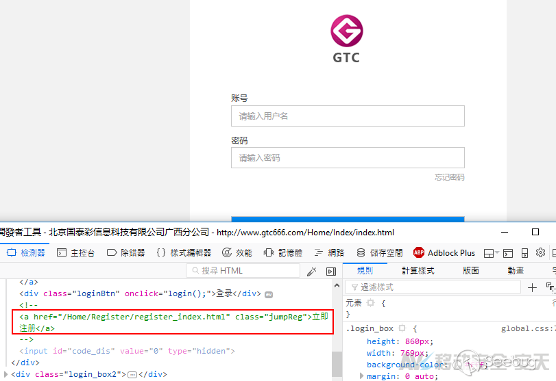 對其后臺(即交易平臺)登陸界面進行代碼查看,發現該團伙號稱“停止注冊”僅僅是在頁面中使用了 將注冊鏈接屏蔽,顯得技術較為薄弱。