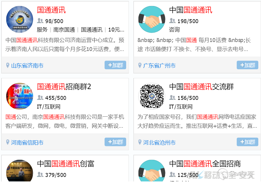 “國通通訊”在推廣過程中,結合了線上、線下渠道的推廣方式,尤其針對中老年人,謊稱自己為“中國第四大電信運營商”,以“國”字頭公司名稱騙取防范心較弱用戶群體的信任,繼而誘騙其繳納“入門費”,成為其用戶。