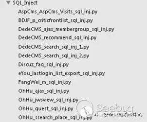 這些文件夾里面是關于所有相同漏洞類型可以是不同CMS的payload文件。拿SQL_Inject來說里面包含的CMS類型有: