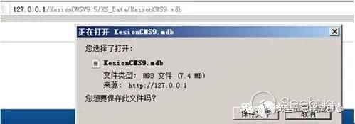 接下來,嘗試編寫payload然后找環境來測試編寫的payload是否成功。先本地搭建asp運行環境,下載小旋風Asp Web服務器,安裝之后開啟軟件,嘗試下載KesionCMS漏洞相應版本到本地,經過測試是v9.5的版本,本地測試漏洞恰好存在。訪問鏈接/KS_Data/KesionCMS9.mdb如圖 3-3-2-3 所示: