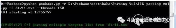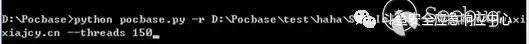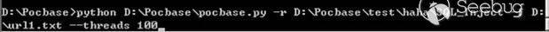 啟動腳本,入口文件pocbase.py,參數r指向要掃描的文件夾路徑,參數f為本次掃描的url文件路徑,參數threads為本次掃描開啟的線程數。如圖 4-3-1-1所示: