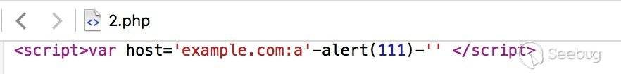 我們看下<script src=標簽這兒,假如Host頭中的“example.com”修改為“example.com:abc":