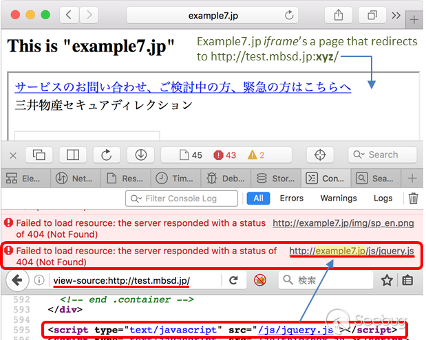 根據原文作者的例子,他在使用:非數字的方法測試目標鏈接的時候,像http://www.mbsd.jp:xyz/在加載外部資源的時候會出現以下情況。