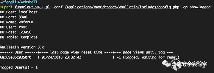 再次使用showTagged查看發現該用戶已被標記并等待重置