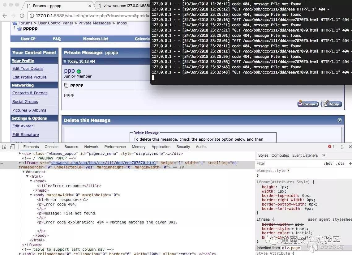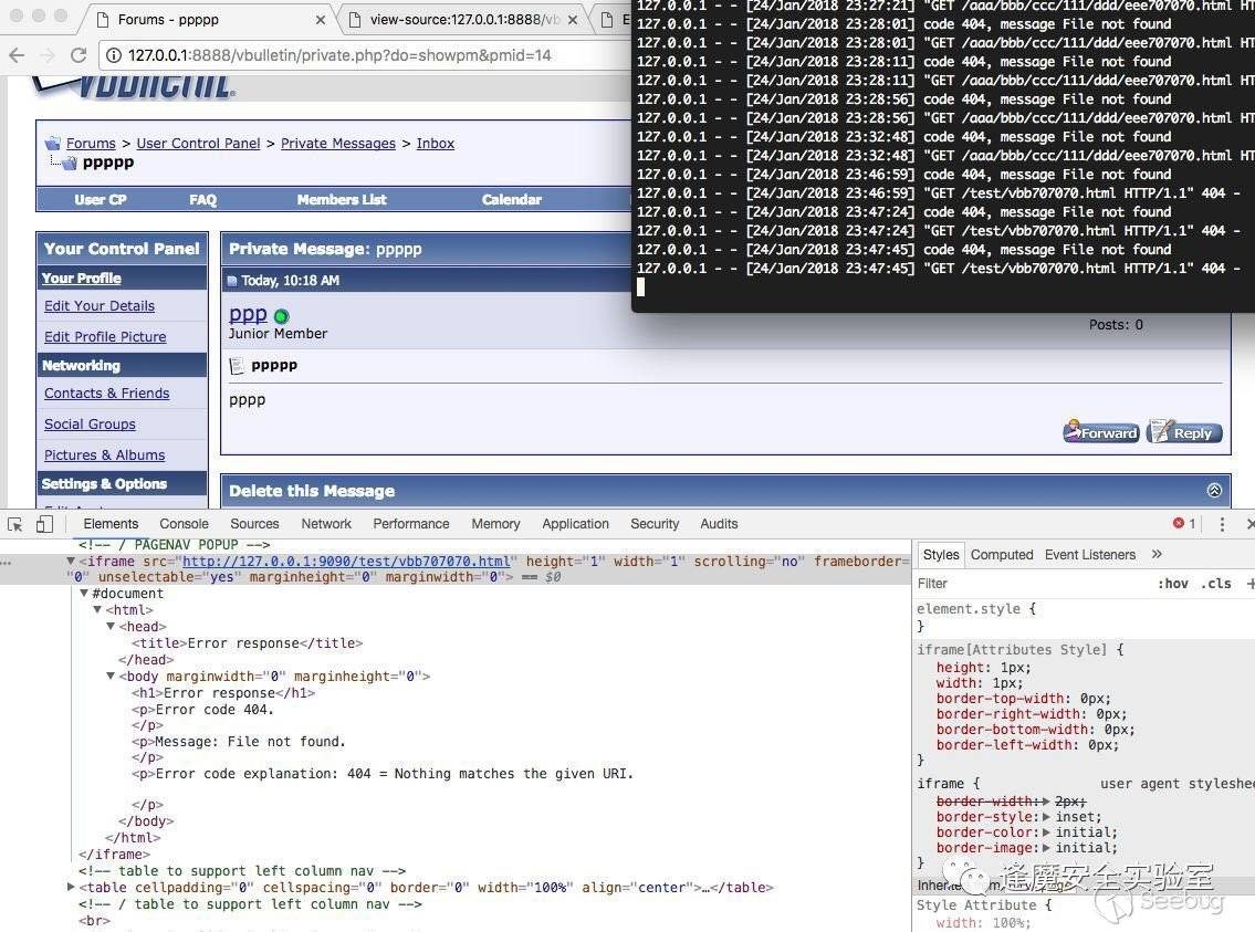 某vb論壇用戶登錄后訪問了類似鏈接查看私信內容:
