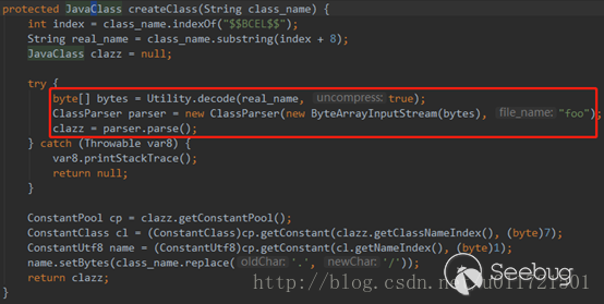 對于包含BCEL子串的類名,調用的是createClass方法進行還原: