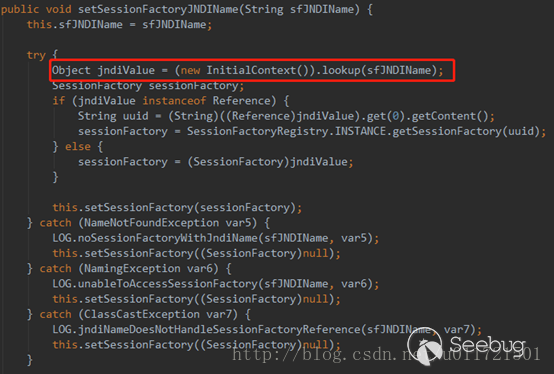 因此我們尋找Gadget的時候也要按照這幾個思路來尋找,這里我主要關注了setter觸發的方式,所以著重看了setter中的敏感JNDI操作。