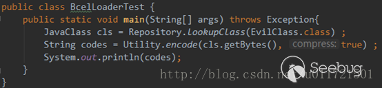 因此driverClassName字段就使用BCEL將字節碼編碼為BCEL的形式即可,代碼如下: