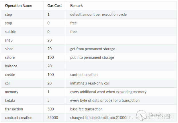 注意到這里是通過message call的方式來發送以太幣,所以在調用sender的fallback函數的時候我們就會有充足的gas來進行循環調用。如果是send的方式,gas只有2300,稍微一操作就會耗盡gas拋出異常,是不夠用來進行嵌套調用的。以下是不同操作所需要的gas數量: