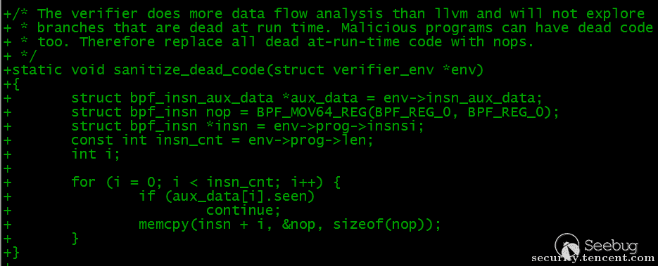 還增加了一項有意思的檢查,把所有的dead_code替換為nop指令,這個明顯是針對exp來的,有點類似于exp的mitigation,upstream kernel可能并不一定喜歡這樣的修復風格:)