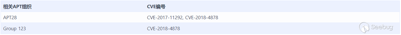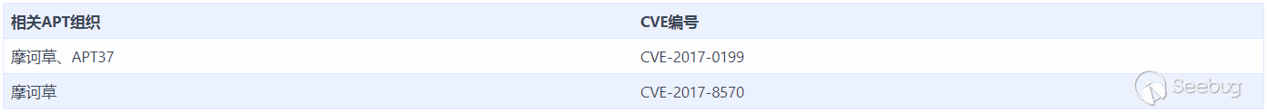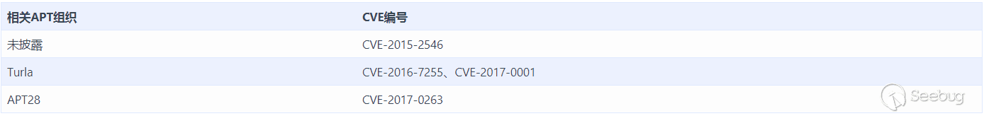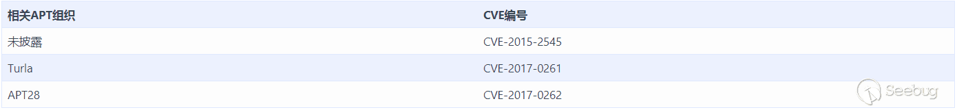 由于EPS漏洞本身利用難度較大,且EPS自Office 2010之后就處于沙箱中隔離執行,因此往往還需要提權漏洞輔助,因此該系列漏洞的使用者往往是知名的大型APT組織。