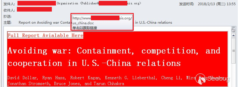 2018年3月360威脅情報中心發布報告《摩訶草APT組織針對我國敏感機構最新的網絡攻擊活動分析》稱摩訶草組織(APT-C-09)針對我國敏感機構使用了帶有CVE-2017-8570漏洞的魚叉郵件進行定向攻擊: