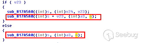 如下所示sub_817A5A0為對應固件中自實現的copy函數,函數內部沒有檢測長度,函數的調用方同樣也沒有對拷貝的長度進行檢測,從而導致溢出。