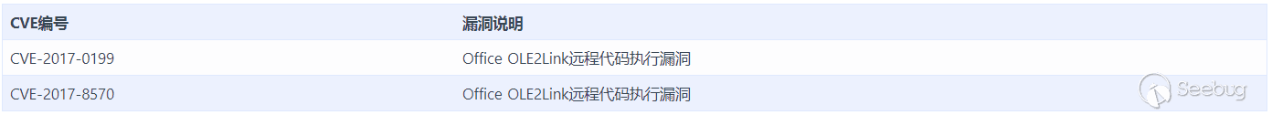 Office OLE2Link是微軟辦公軟件(Office)中的一個重要特性,它允許Office文檔通過對象鏈接技術在文檔中插入遠程對象,在文檔打開時自動加載處理。由于設計不當,在這個處理過程中出現了嚴重的邏輯漏洞,而我們選擇CVE-2017-0199為這類漏洞的典型代表。