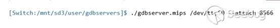 在Linux shell下使用gdbserver附加到進程iosd上(flash:/map at /mnt/sd3/user)。
