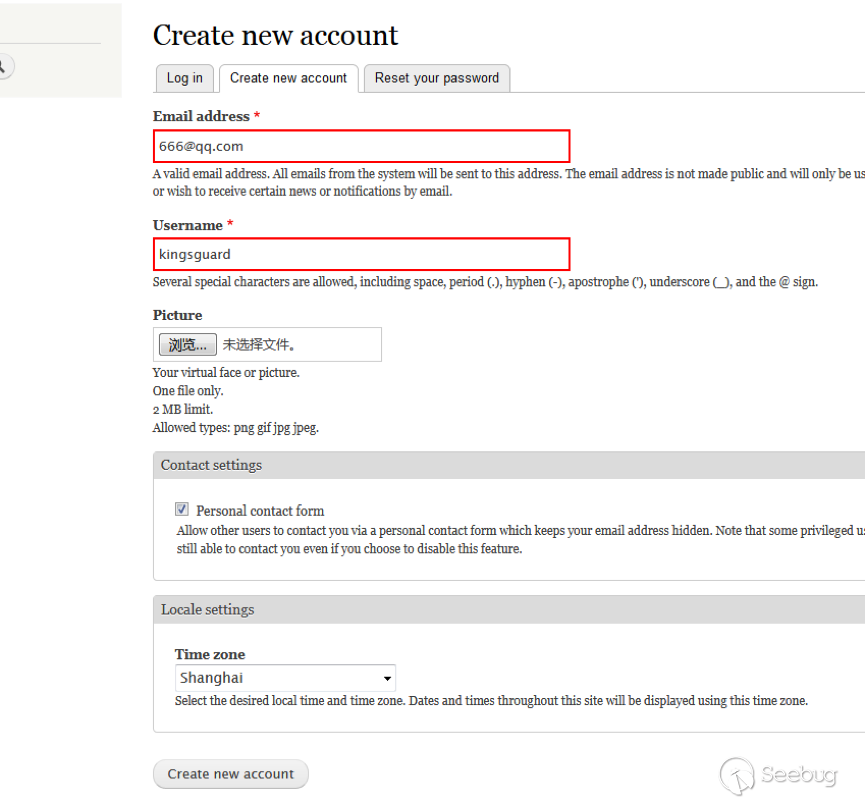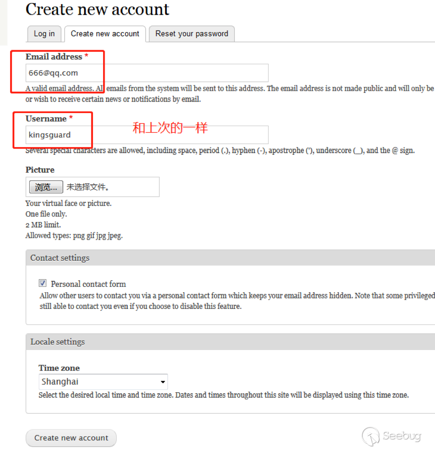 接著我們再按著上面的表單一模一樣的注冊一個看看: